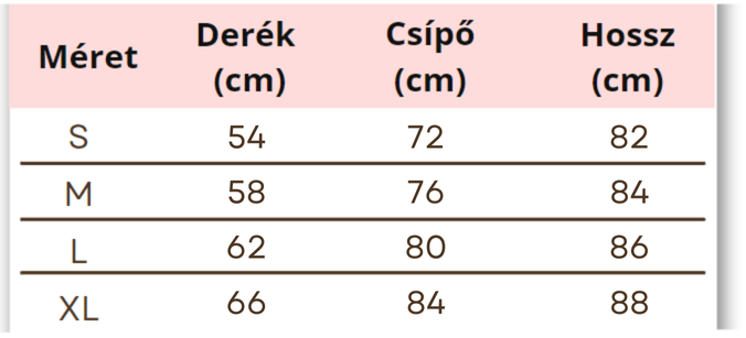 | Méret | S, M, L, XL |
