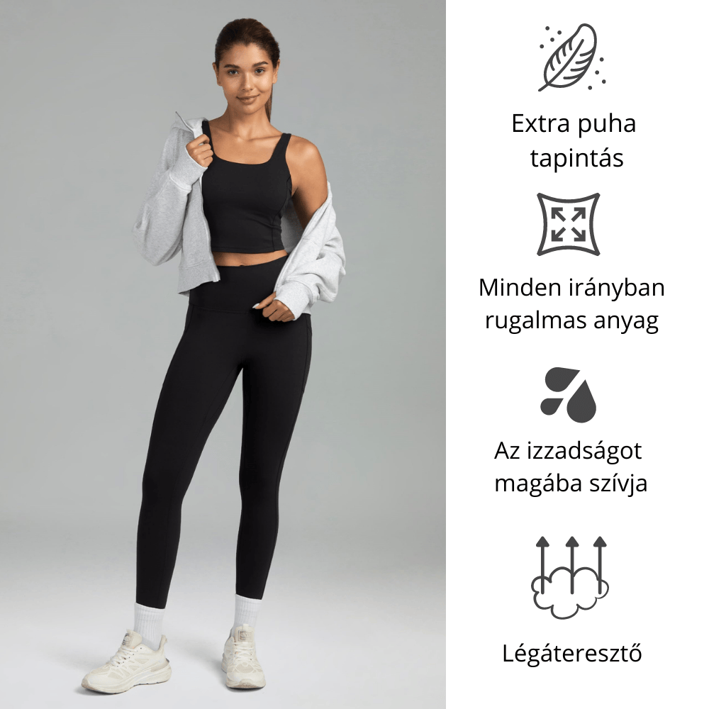 A magas derék segít, hogy a tested ne ereszkedjen meg. Nem csúszik le a leggings. Kiemeli a vonalaid, így kölcsönöz tökéletes formát.